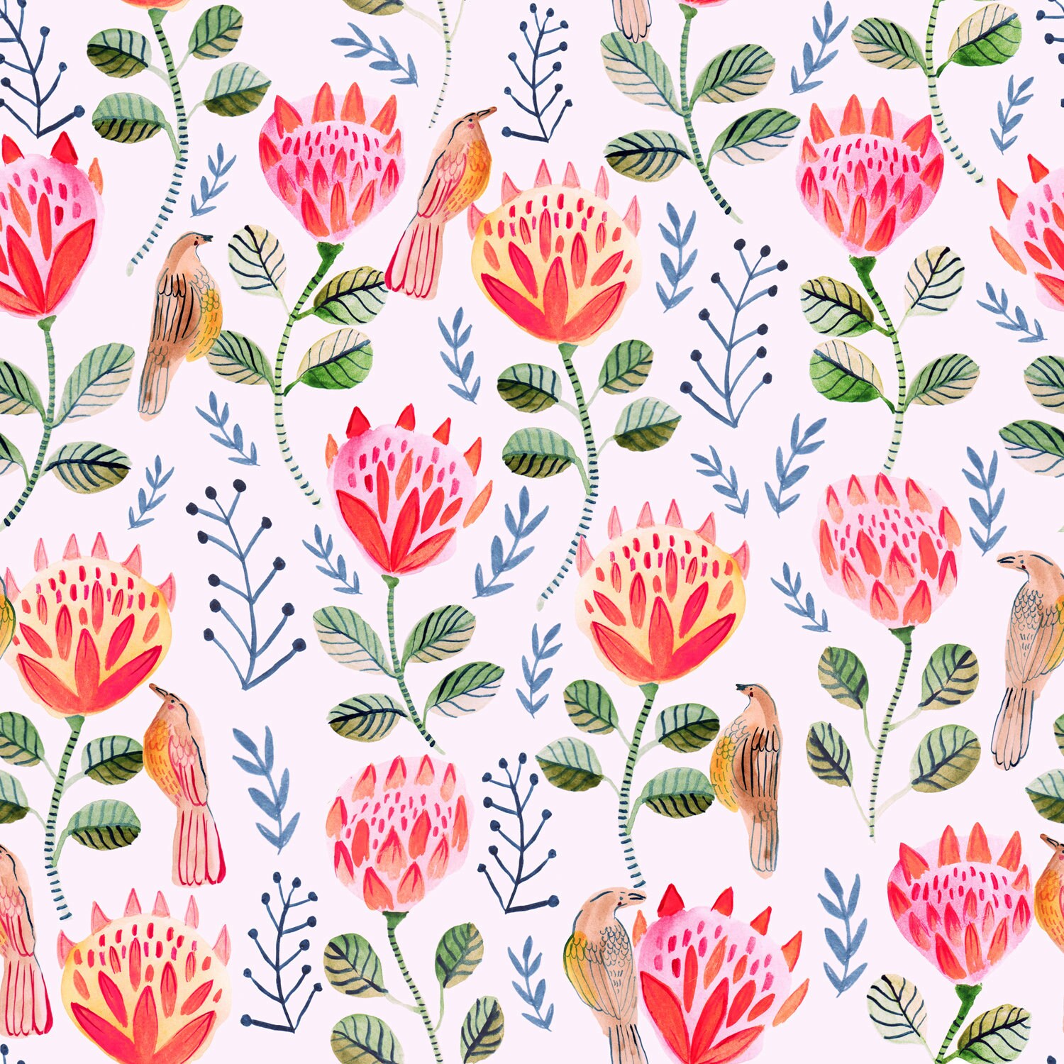 - Original king protea and wattle bird textile print designed by myself, Rohani Le Rossignol and exclusive to RoEnArt.
