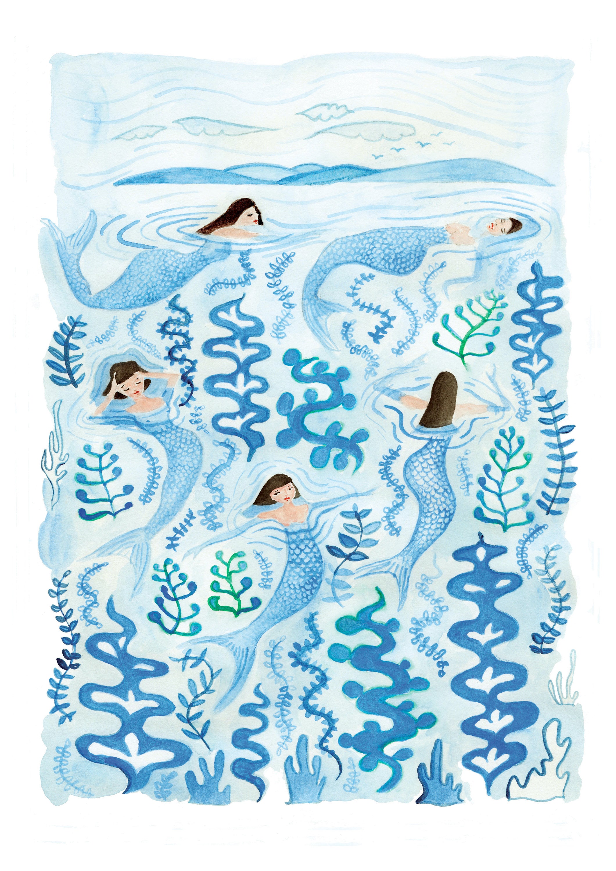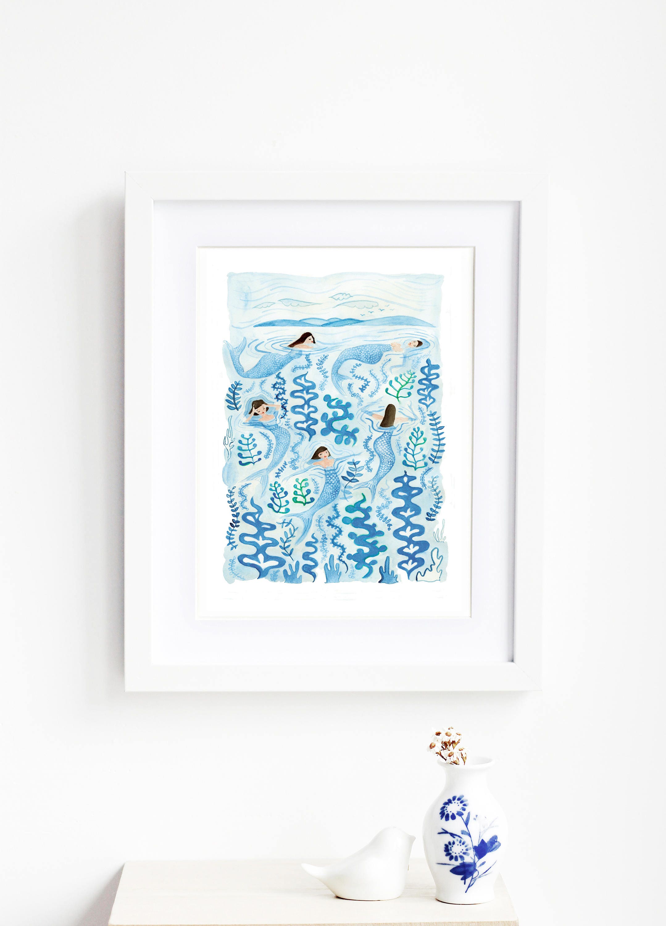Digital print of my tiny mermaids water colour illustration.