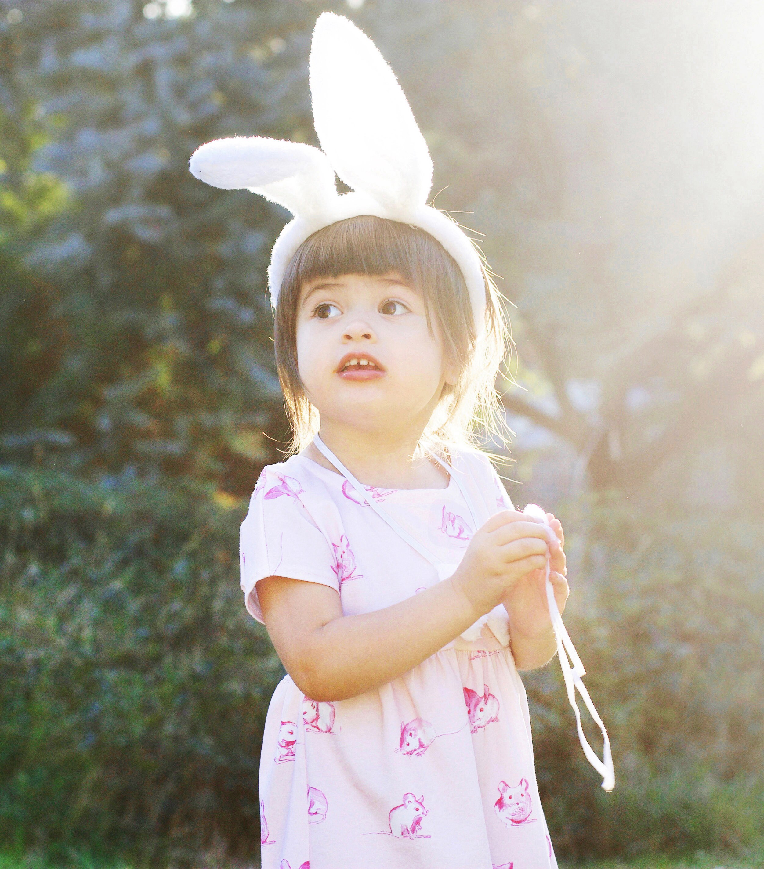 This sweet little dress has a relaxed bodice, and softly gathered skirt.