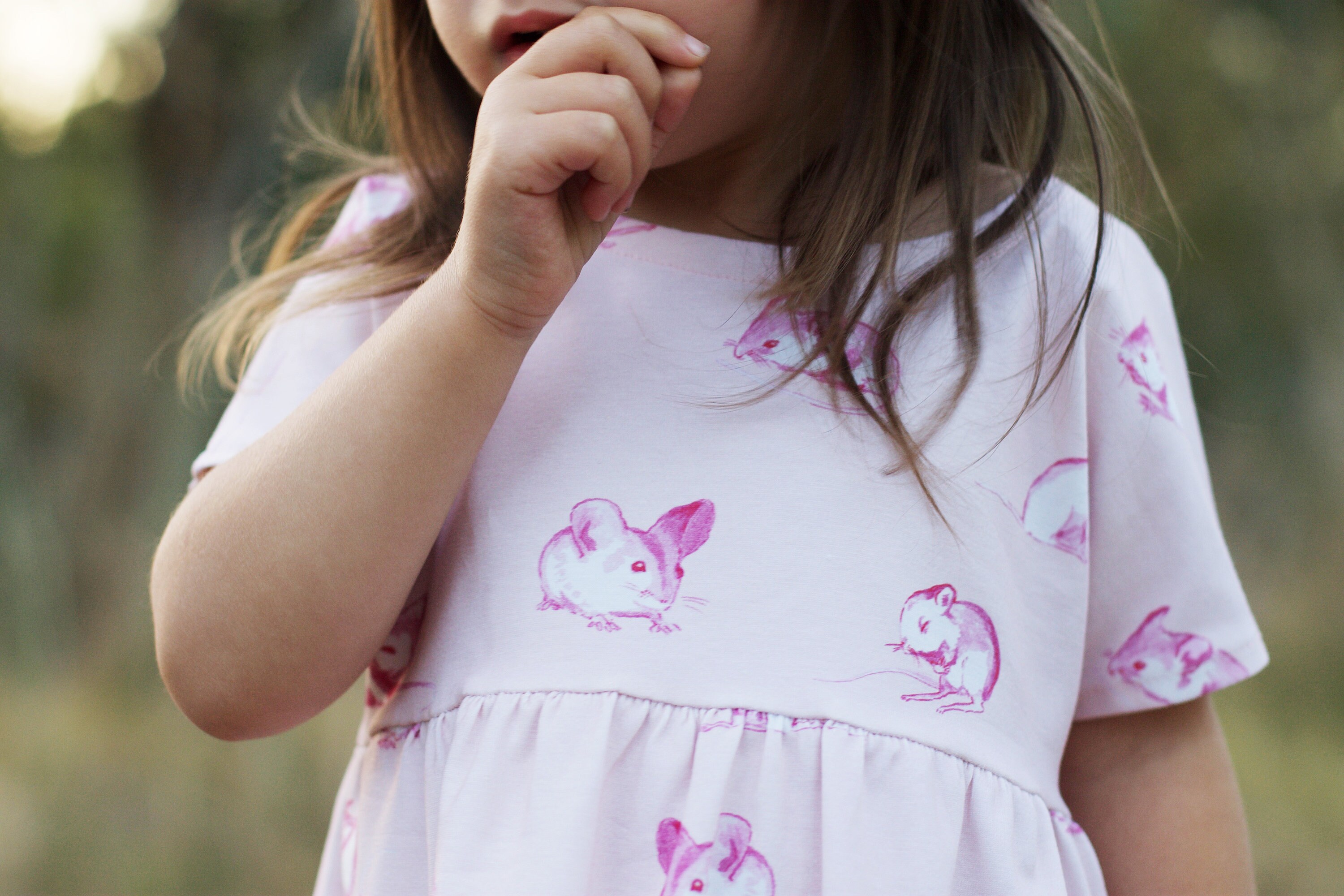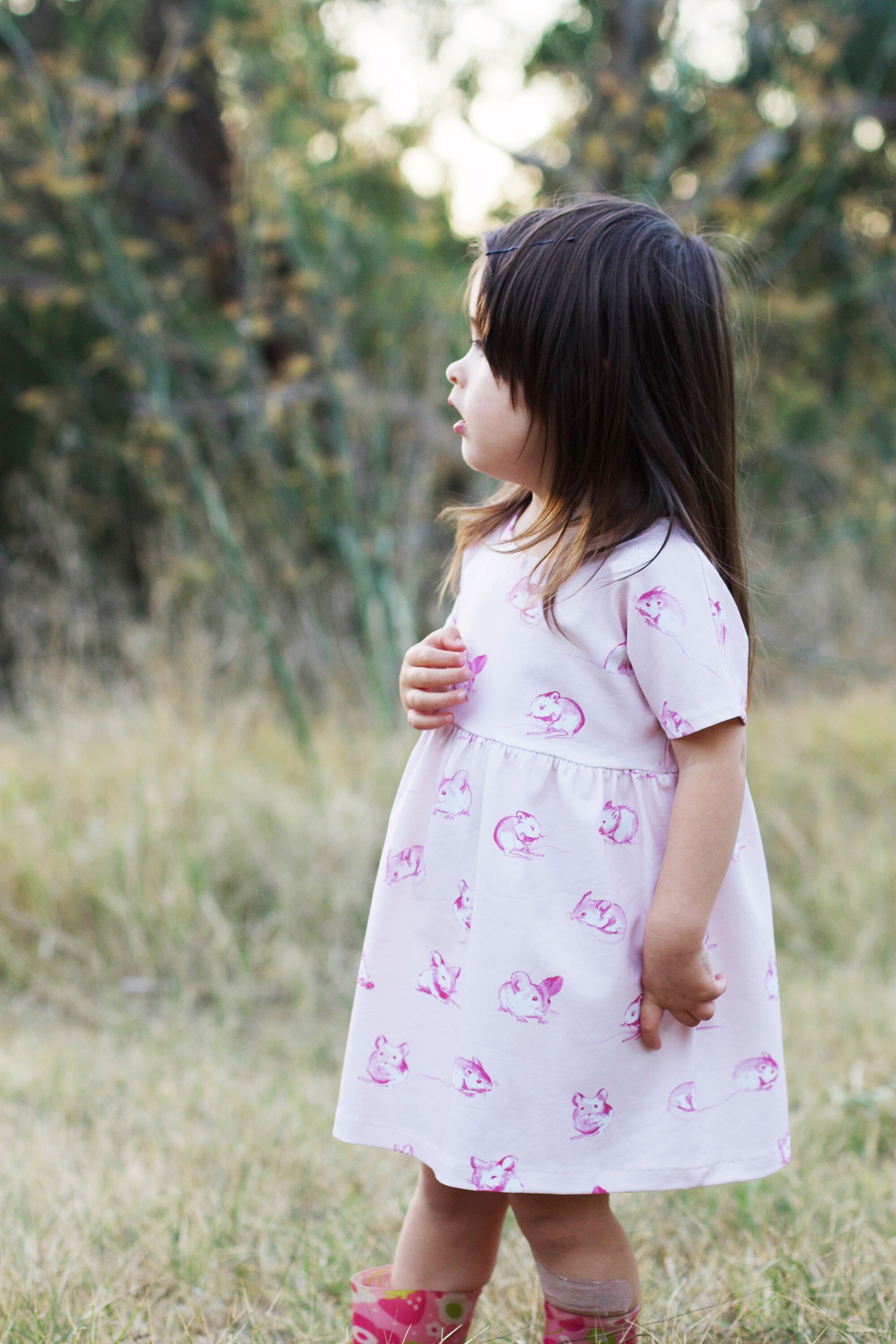 Adorable field mouse dress for your bub in beautiful, soft stretchy organic cotton jersey.